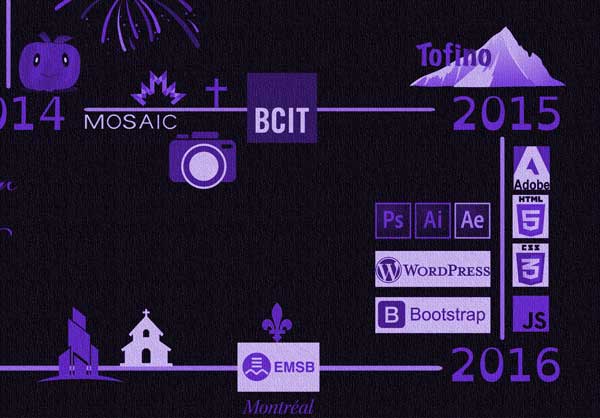 I use illustrator to draw something I met which are very meaningful, and I choose different graphic instead of them, and put them together into Photoshop. I follow the time line to link all of them.